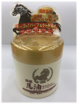 馬油を主原料とし、国産馬プラセンタエキス・3Dヒアルロン酸を配合しています。保湿成分がお肌を優しく包み込み、潤いとハリツヤを保つパーフェクトゲルになりました。
